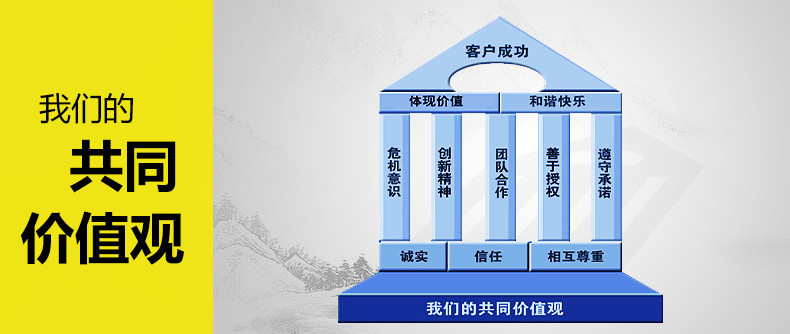 “危機意識、創新精神、團隊合作、善于授權和遵守承諾”是我們事業成功的支柱。